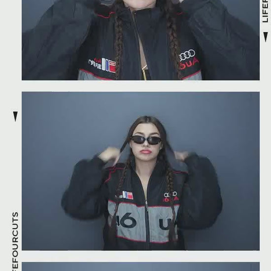 Channeling peak motorsport energy, this vintage Audi racing jacket fuses iconic 90s/00s racing aesthetics with timeless streetwear appeal. Featuring bold embroidered Audi branding, signature racing patches, and a classic oversized fit, it's built for both speed and statement. The black and silver contrast paneling gives it that unmistakable track-side edge — whether you're behind the wheel or on the street.